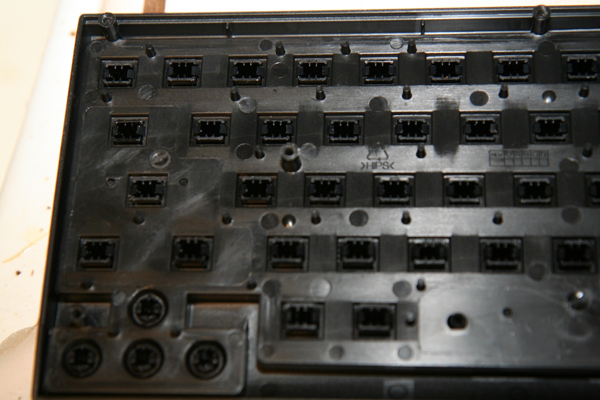 裏のネジをはずして、キーボードをはずすとこんな感じ。指で押すとぽろぽろとキーボードが外れていく。