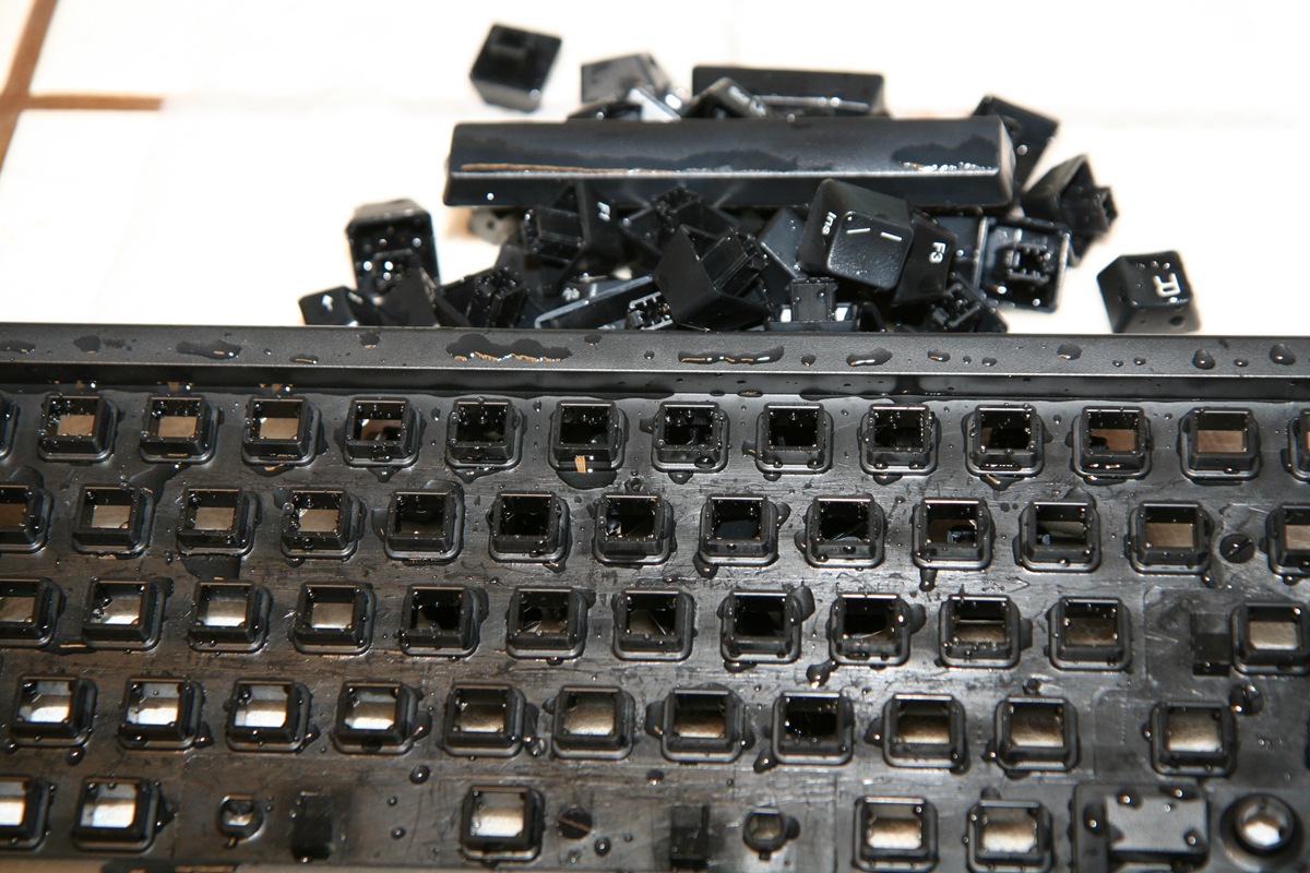 前回は、食洗器に上を直接放り込んだけど、今回は、キートップをはずして洗ってみた。