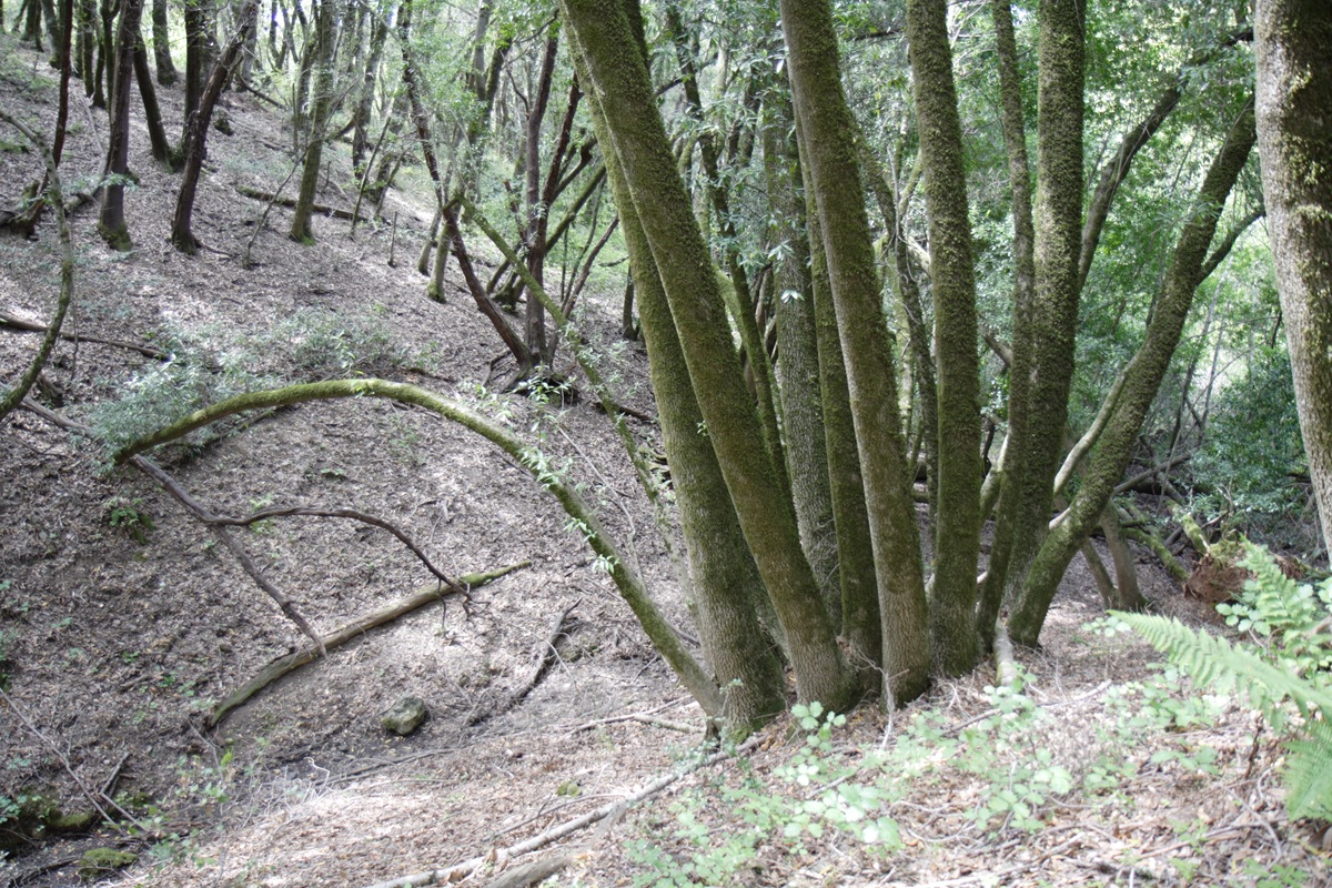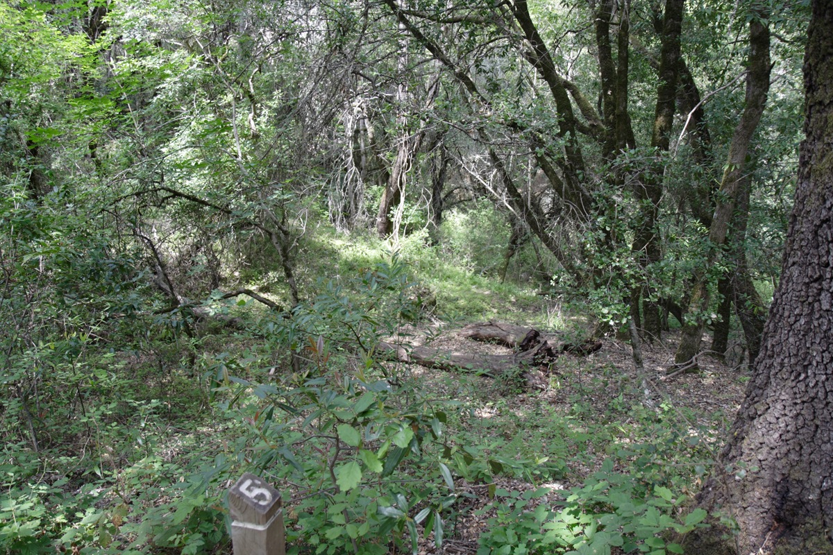 このSan Andreas Fault Trailにはいくつか見どころポイントのところに番号の杭が打たれている。入口のところにある、地図とともに、解説文があるので、合わせて読むと楽しい。ここは、地すべりのポイント。