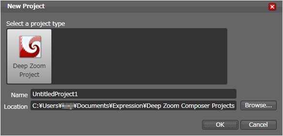 Expressionの下のDeep Zoom Composer Projectsの下にプロジェクトが作成される。あくまでも、Expressionの一部の機能だと言いたいらしい。