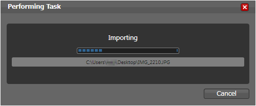 イメージを放り込むと、「Importing」と表示され、画像が取り込まれていく。