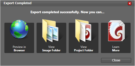 ファイルの生成が終わると、上のようなダイアログが出てくる。Preview in Browserを押せば、IEが起動して、画像を見ることができる。
