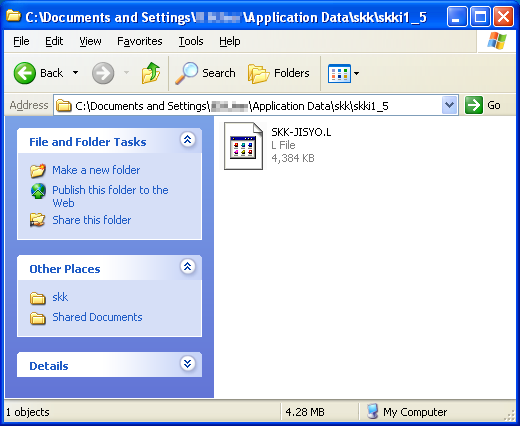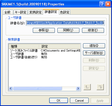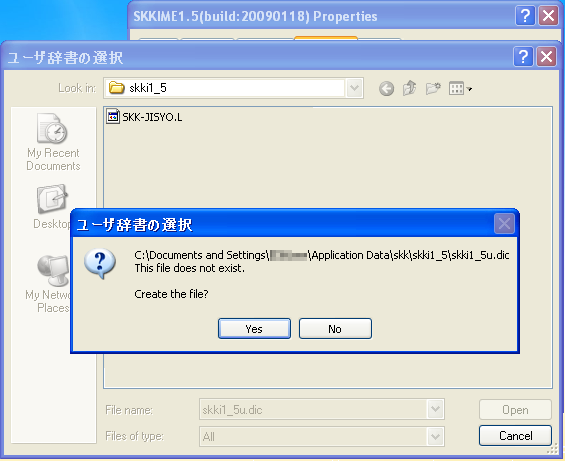 SkkLocalJisyo_CreateT (localjisyo => ‘C:Documents and SettingsXXXXApplication Dataskk`skki1_5u.dic)