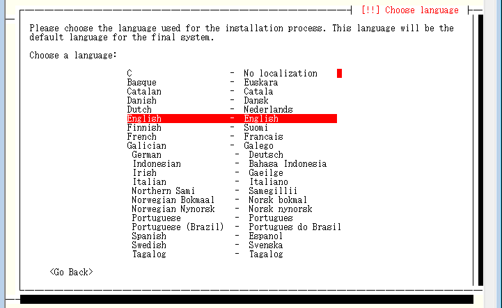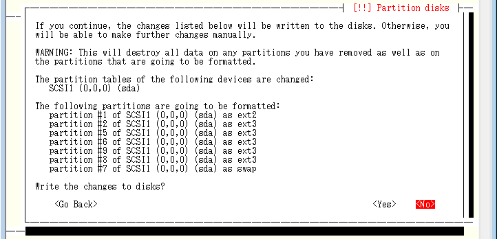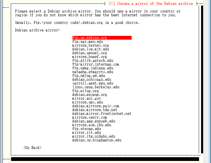 インストーラーが起動したので、こっから先は普通のDebian Lennyのインストール。