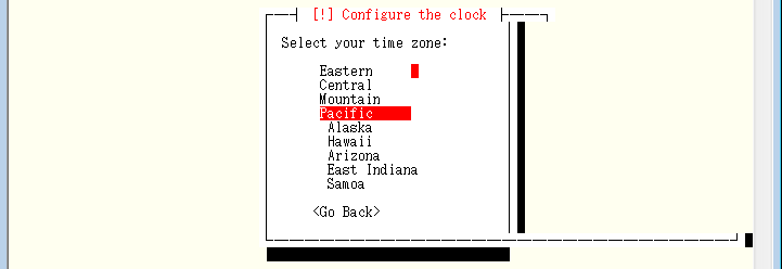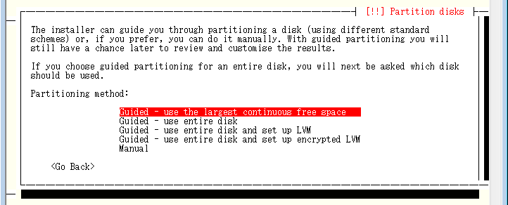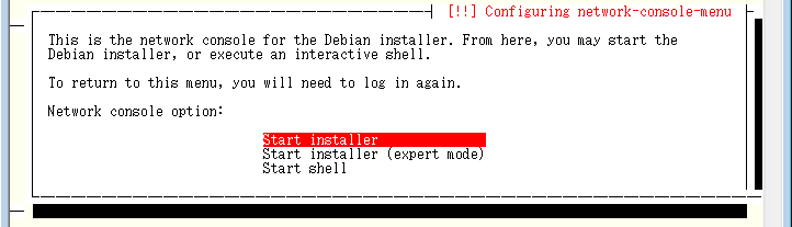 インストーラーの基本のおさらい。Tabでアクティブを移動して、Spaceで選択、Enterで確定。