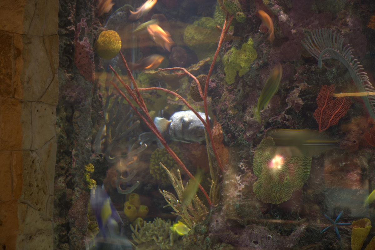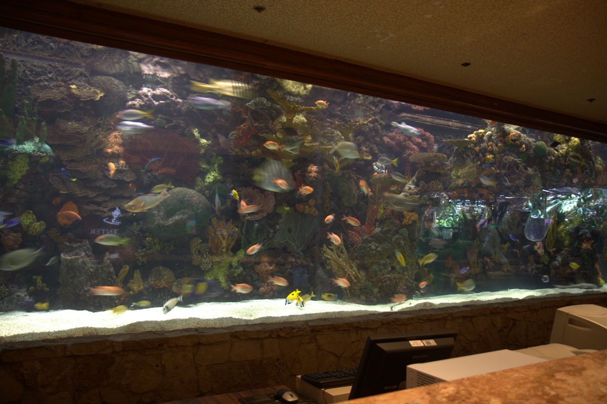 ばたばたと、チェックアウト。ミラージュのホテルのフロントの後ろには巨大な水槽があって、いろんな魚がいっぱい泳いでました。