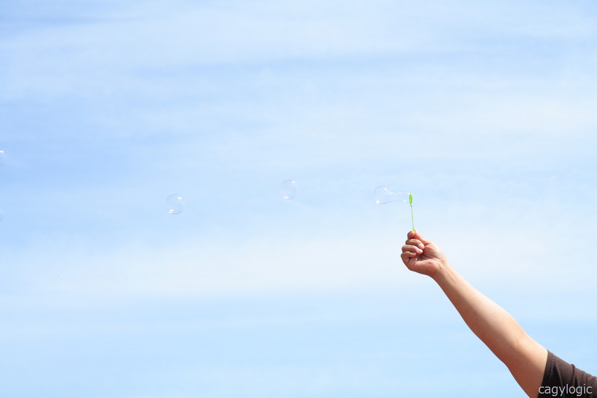 ちょっと、風が強いがそんなに寒くはない。シャボン玉が、めっちゃ飛んでく。もう、それこそ、となりの山まで飛んでいく勢い。