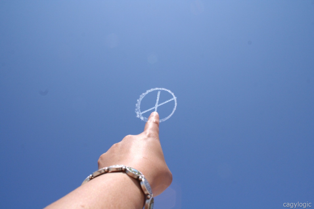 飛行機が、こんな記号を空のあちこちに書いていました。