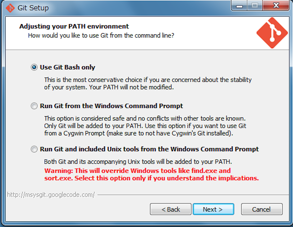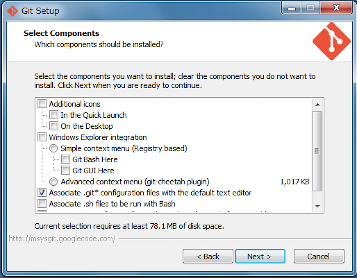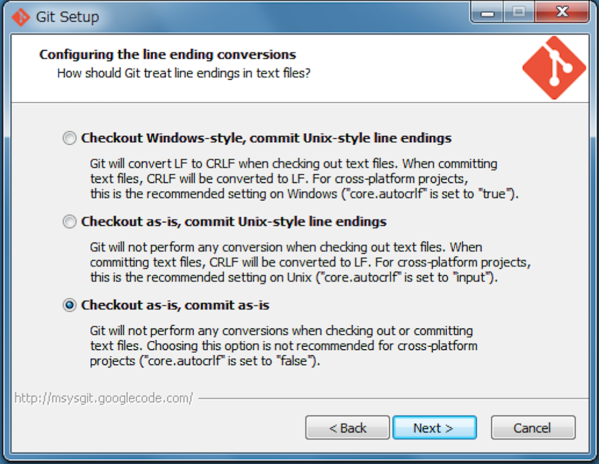 次に、msysGitのインストール。