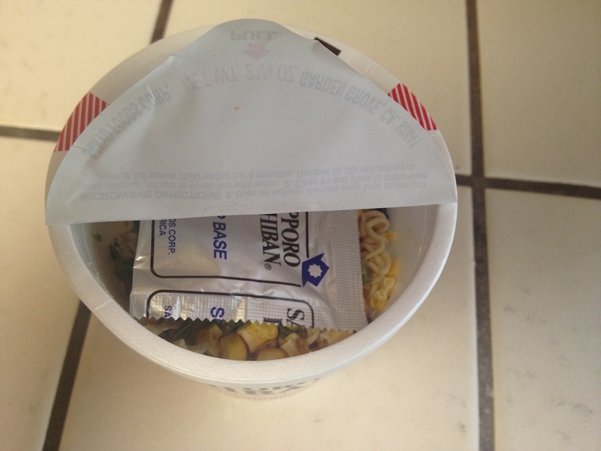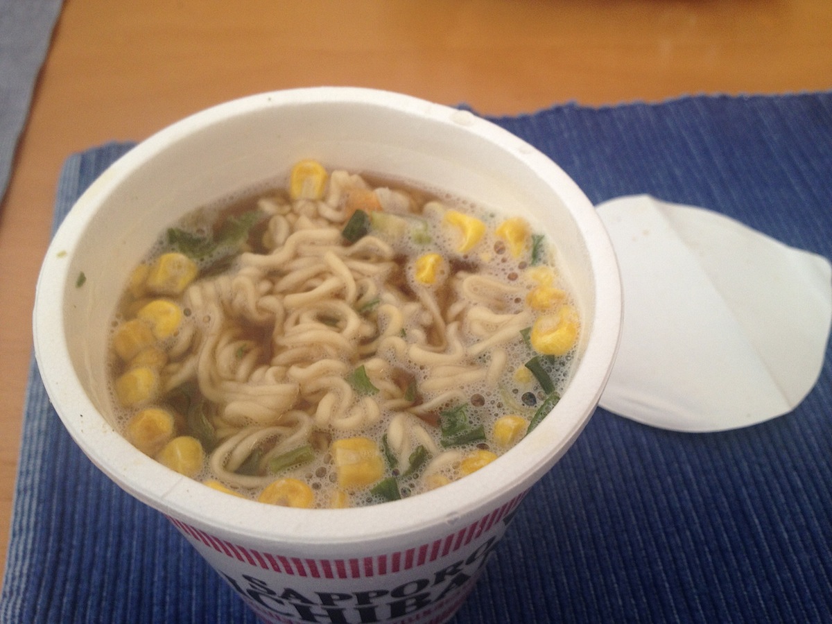 考えてみたら、俺、サッポロ一番は袋麺の方ばっかり買ってて、カップ麺って、日本でも買ったこと無いかも。
