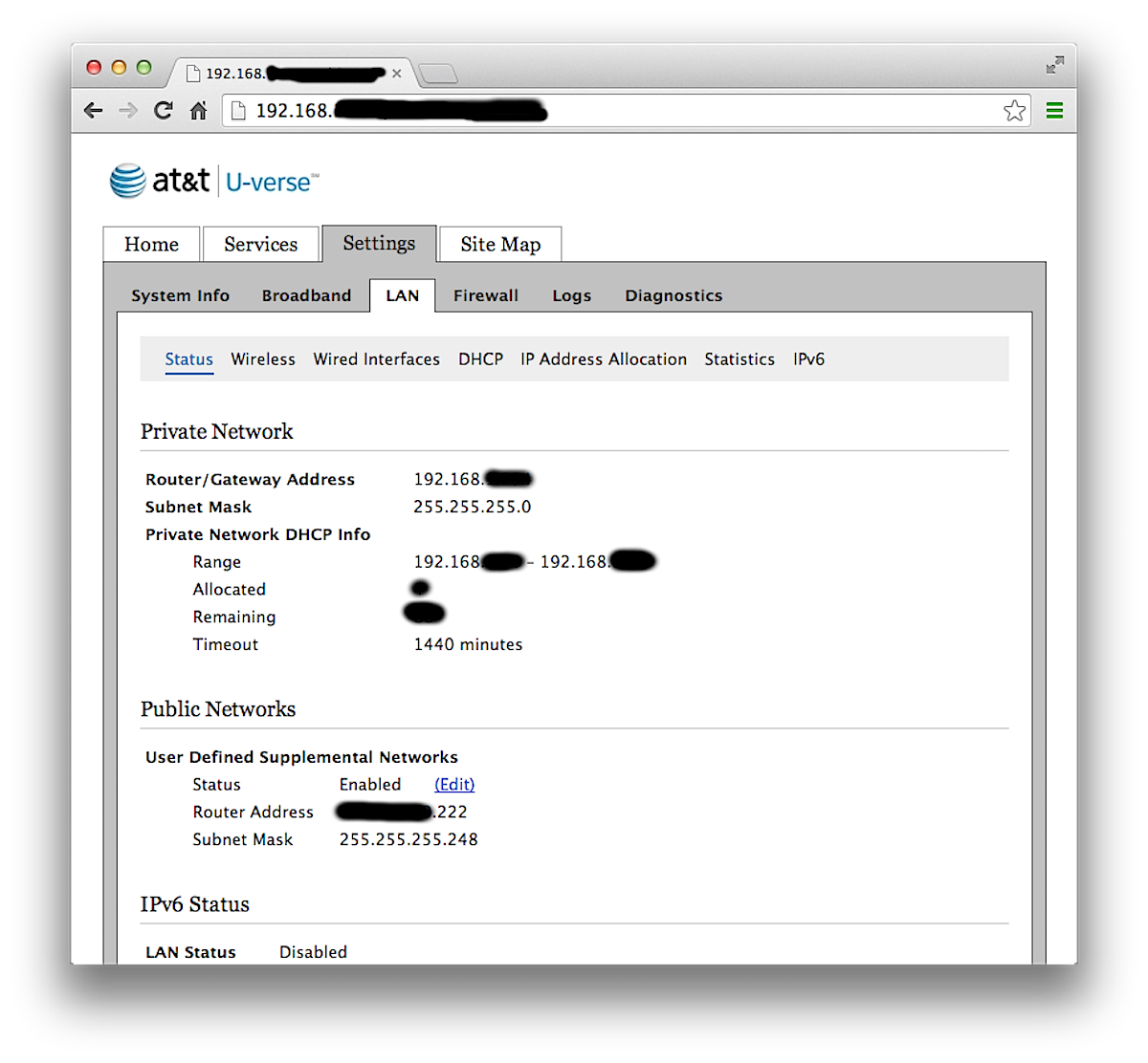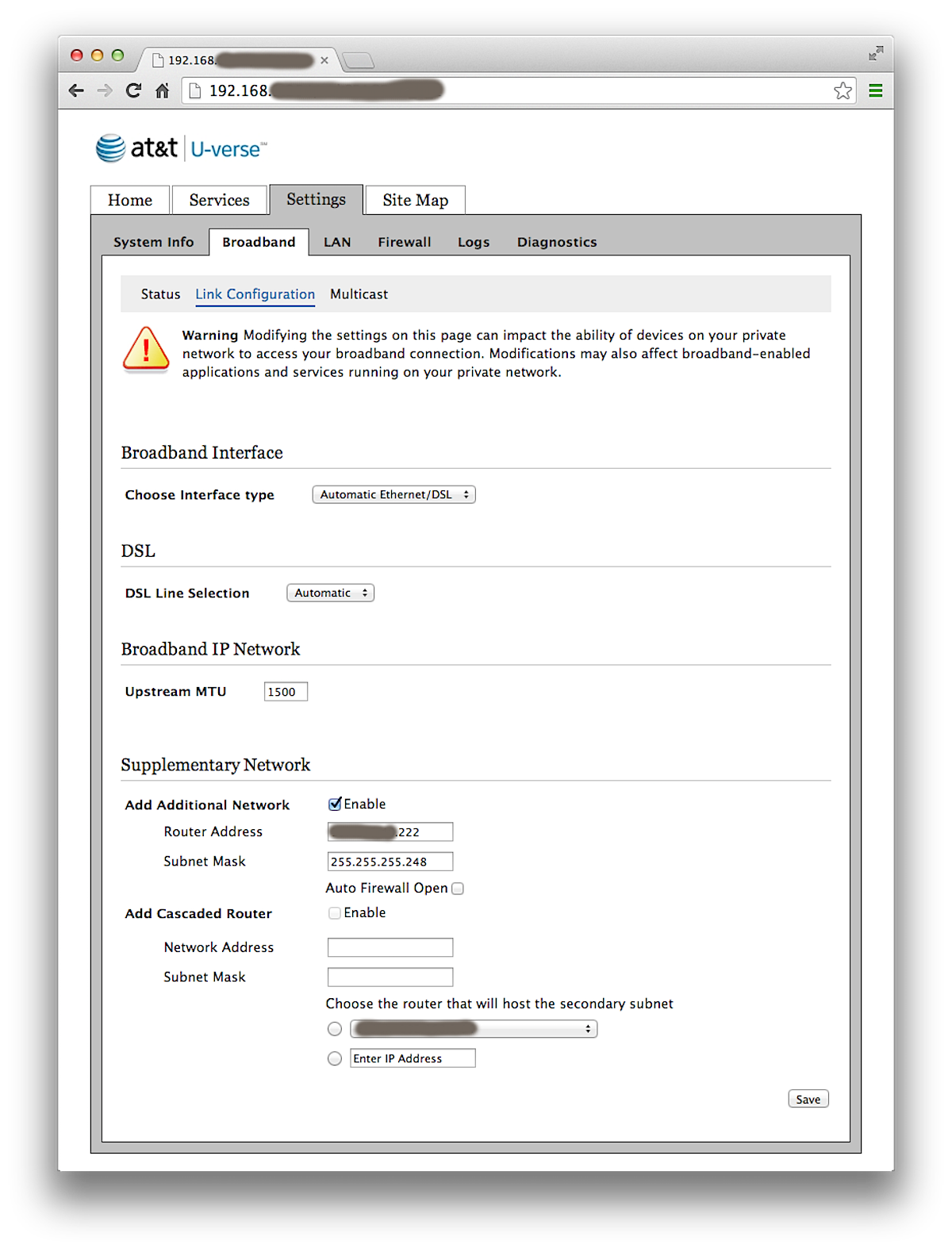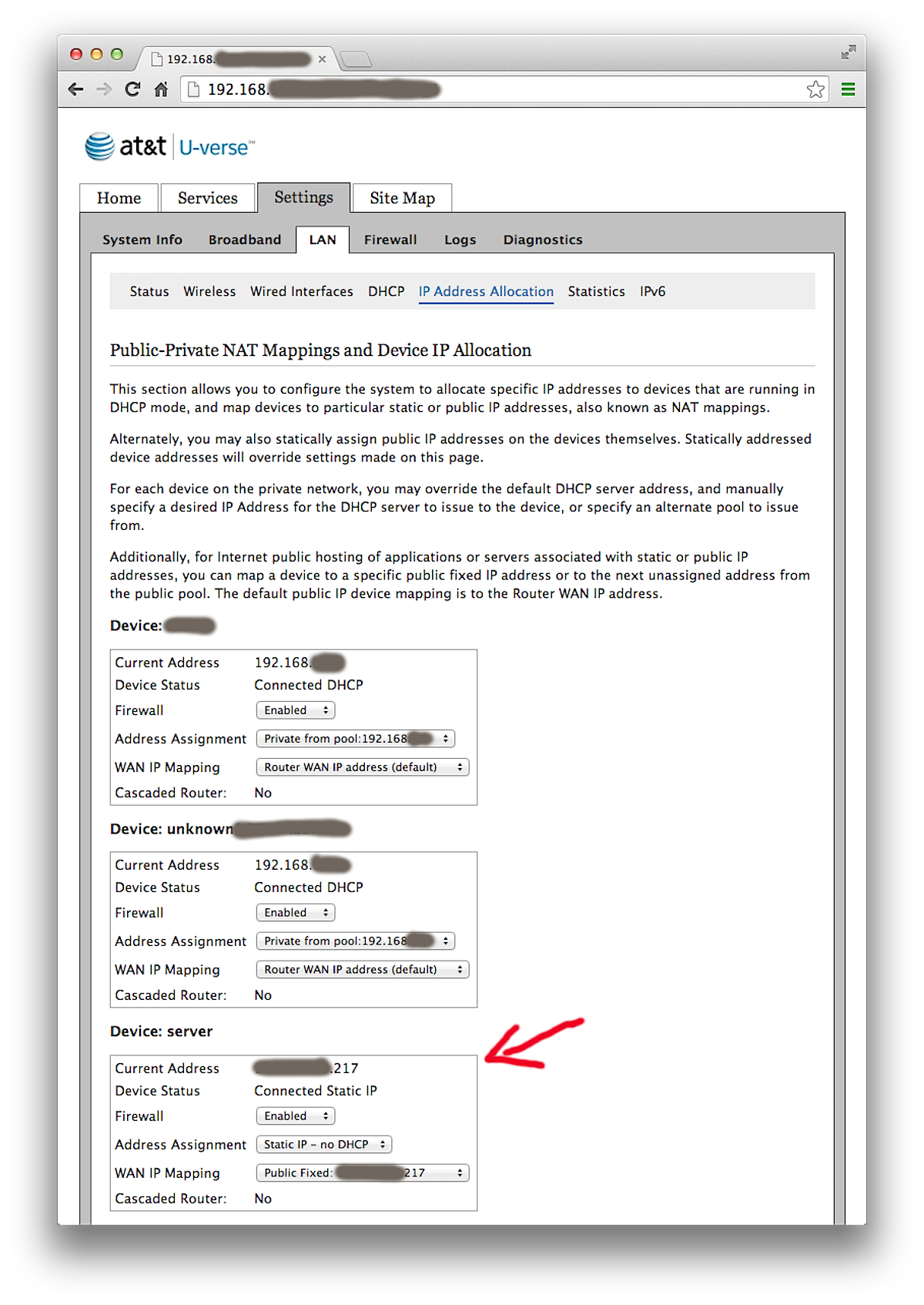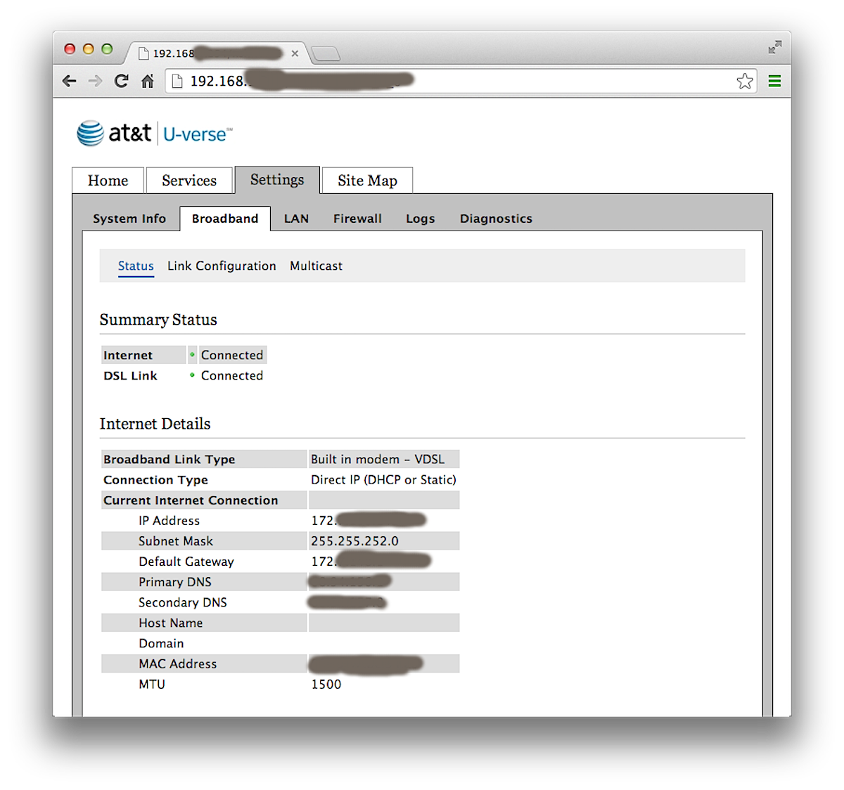 AT&TのU-verseのStatic IPの設定でがっつりはまったので、メモ。