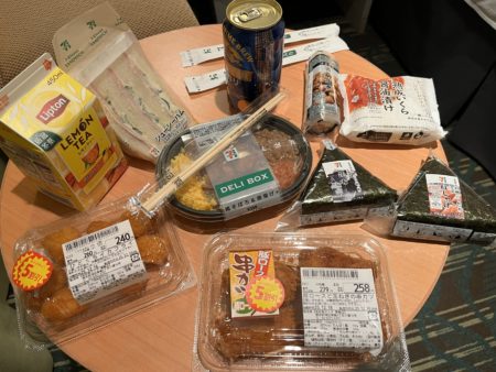 12月16日 NRT着、そのままリムジンバスで品川プリンスホテルへ。リムジンバスまでちょっと時間があったので、成田空港をじっくり探索できました。近所のコンビニで日本飯。